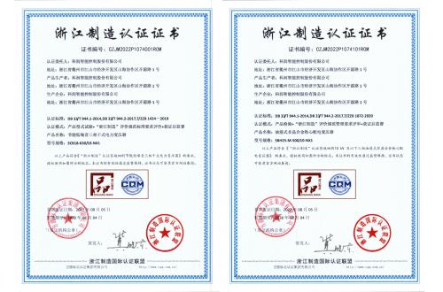 浙江制造認(rèn)證證書